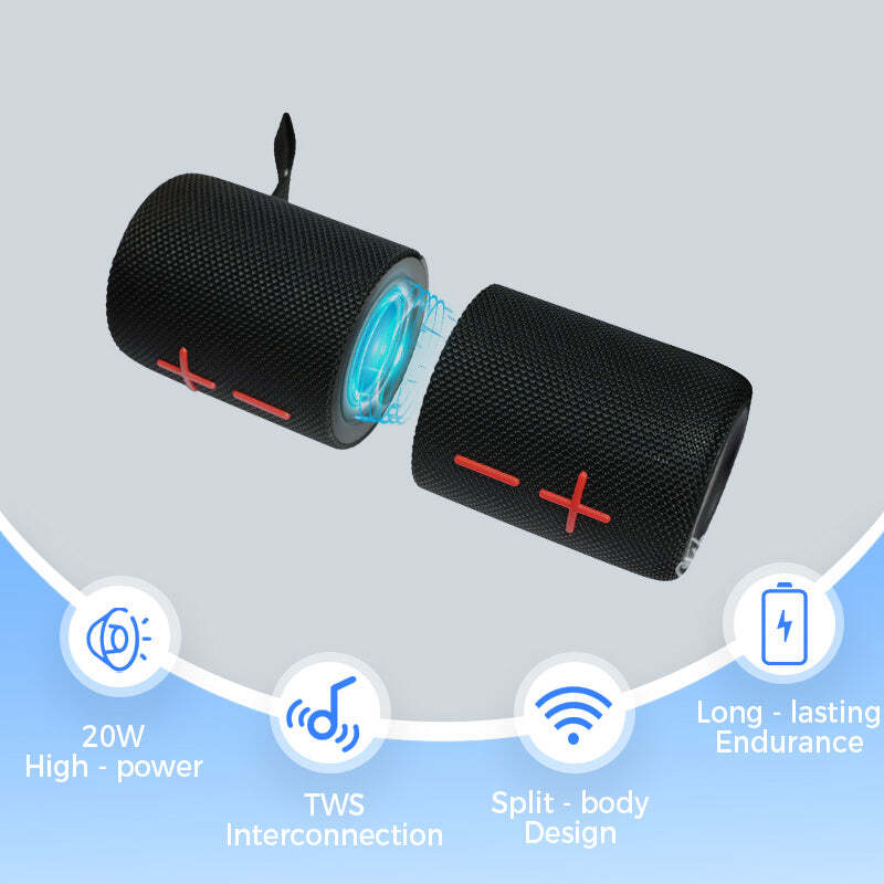 MAGNETIC SPLITTABLE DESIGN: The 2-in-1 magnetic, dual-separable Bluetooth speaker consists of two separate cylindrical units that can be connected or separated magnetically. This innovative design allows you to enjoy stereo sound by placing the units apart, or a more compact audio experience when they are combined.